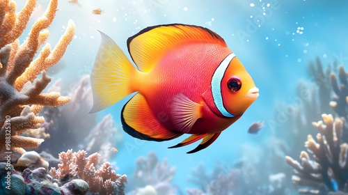 An angelfish swimming gracefully through a maze of coral and marine life, its vibrant colors standing out against the intricate reef.