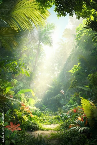 An animalwildlife 3D rendering of a lifelike jungle scene with detailed flora and fauna, showcasing the depth and realism of the environment