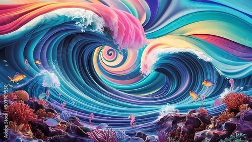 An animated wallpaper with colorful waves