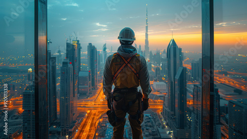 An architect is at work on a construction site in Saudi Arabia, An engineer is at work at a construction site in Dubai, UAE.generative ai