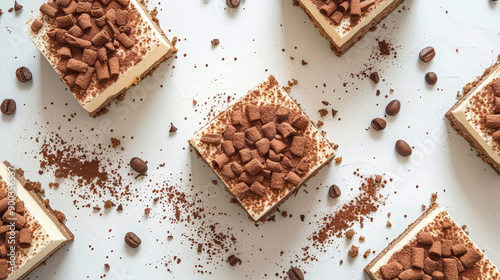 an array of classic tiramisu, dessert element, flat lay, rich tones, isolated on white background