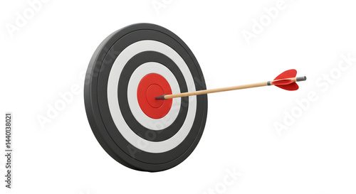 An arrow hitting the center of a target with alternating rings on a simple isolated background view on transparent background