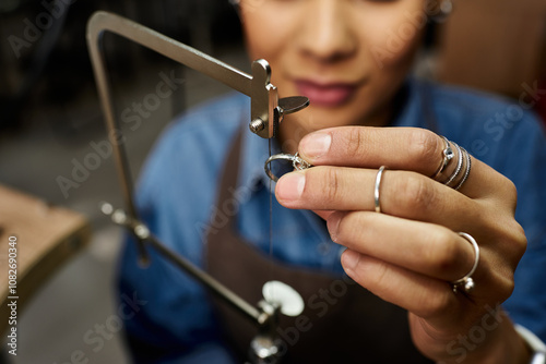 An artisan creates exquisite jewelry, showcasing her craftsmanship in the studio.