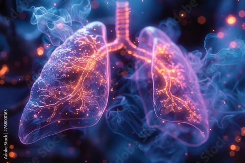 An artistic 3D visualization of a tumor in the lungs' bronchial passages, illustrating the challenges of lung tumors