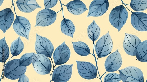 An artistic arrangement featuring dense blue leaves patterned on a light yellow background, creating a vivid and stylish visual element perfect for design projects.