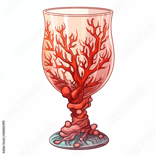 An artistic glass resembling coral formations filled with vibrant colors and intricate details