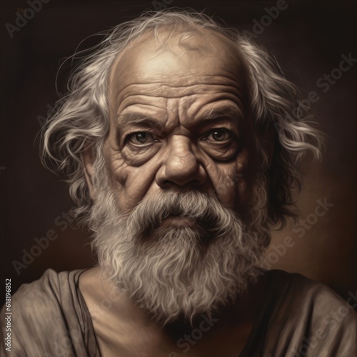 An artistic interpretation of a portrait of Socrates, the renowned ancient Greek philosopher