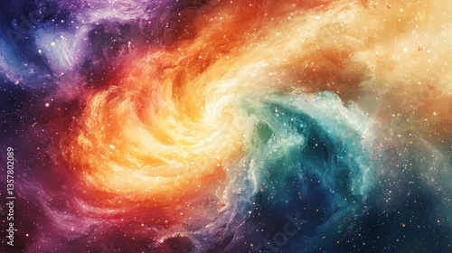 An artistic swirling celestial nebula with vibrant colorful gases and stars