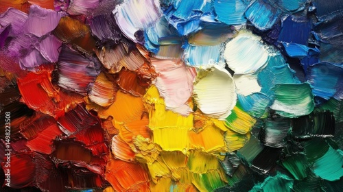An artist's palette overflowing with an array of vivid paint colors, ready for creation.