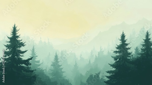 An artwork depicting a misty green forest, featuring soft blending and atmospheric depth, resulting in a tranquil and dreamy natural landscape