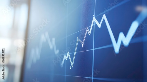 An ascending financial chart is drawn on a touch screen. The file contains two colors, white and blue. An arrow indicates that profits are increasing on a financial chart. The file shows the