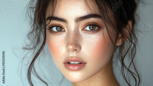 An Asian woman with shiny makeup, representing the benefits of cosmetics and skincare for a luxurious look