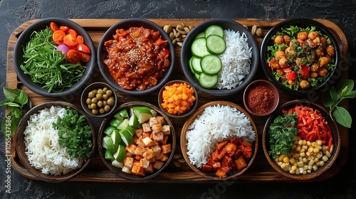 An assortment of bowls with various ingredients for creating a delicious and healthy meal.