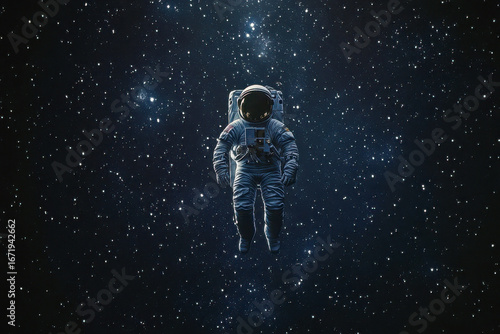 An astronaut drifts alone in the dark expanse of space, surrounded by countless shining stars, showcasing the beauty of the cosmos
