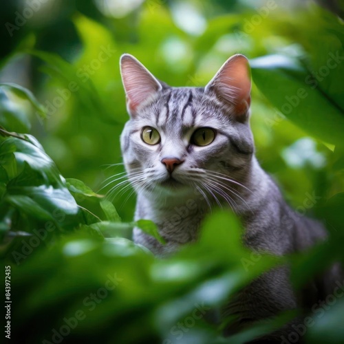 An Australian mist cat in lush greenery, a realistic portrait created by artificial intelligence