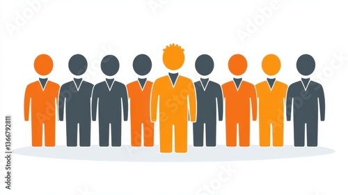 An depicting a group of professionals in a corporate or business setting with a leader standing out in the center of the team