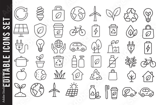 An Editable Set of Black and White Line Art Icons for Environment, Ecology, and Sustainability