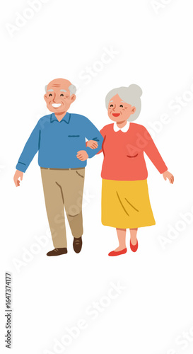 An elderly couple walking and holding hands. They are enjoying a leisurely stroll together