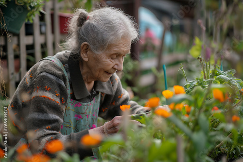 An elderly woman runs a gardening blog, sharing her experience on social networks