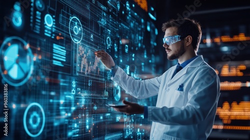 An electrical engineer presenting findings from a network analysis, charts, and graphs in the background,