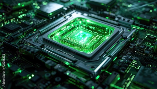 An electronic circuit board serves as the backdrop, symbolizing central computer processors within the realm of technology.