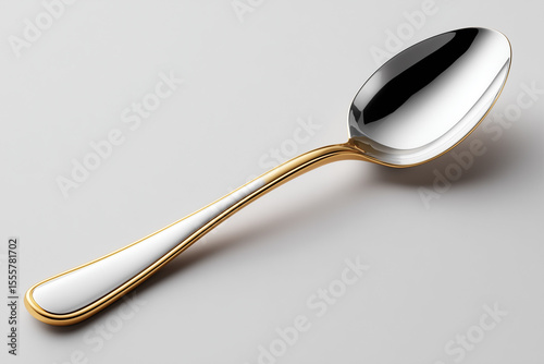 An elegant and polished silver spoon with a luxurious golden handle, beautifully reflecting light, showcasing sophisticated flatware design.
