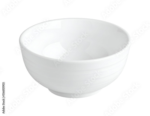 An elegant, empty white serving bowl showcases its clean lines and smooth, reflective surface.