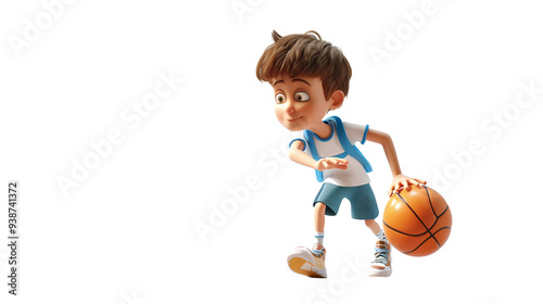 An elementary school boy practicing basketball, 3d rendering, cartoon stlye, transparent background, png file, Generative AI illustrations.