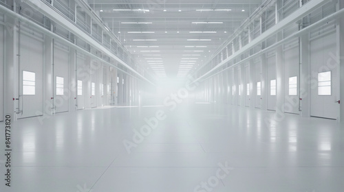 An empty big white clean warehouse. Background image. Created with Generative AI technology.