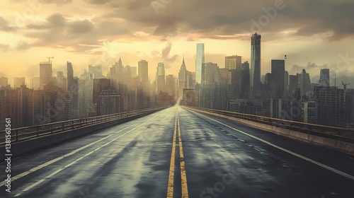 An empty highway stretching through the city. Vanishing Echo. Illustration