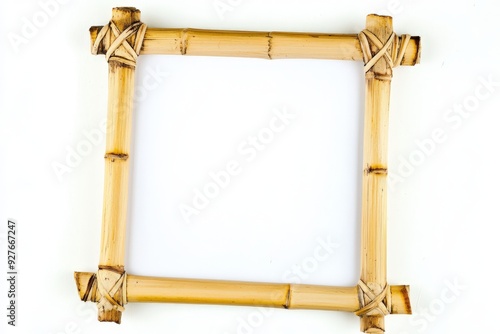 an empty picture frame made from bamboo on a white background