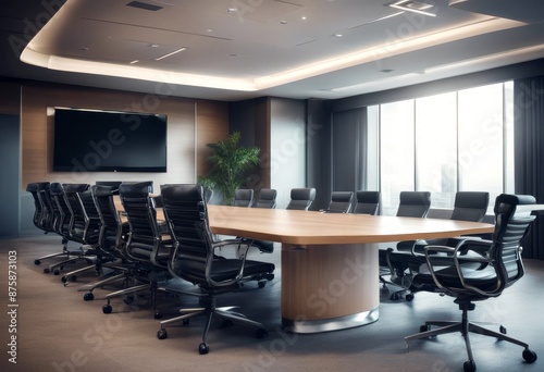 an empty representing business presentation conference big elegant screen idea tv table teamwork boardroom collaboration meeting corporate office chair discussion room board corporation