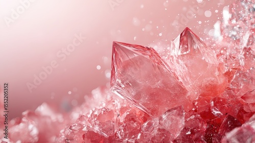 An enchanting close-up of shimmering pink crystals, intricately formed and beautifully illuminated, creates a mesmerizing and captivating visual experience.