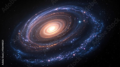 An enchanting portrait of a spiral galaxy with delicate wisps of gas and dust emanating from its core against an inky black canvas , universe, celestial, vastness,