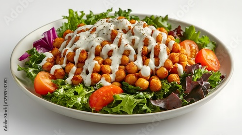 an enticing image of a colorful plant-based salad with dressing fresh ingredients vibrant colors healthy lifestyle choices