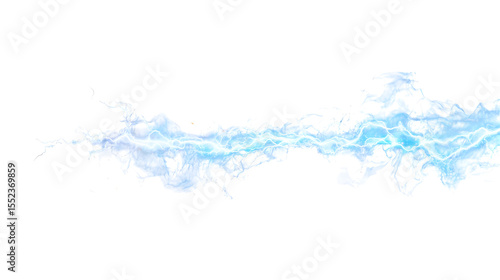 An ethereal blue lightning streak illuminates the scene with energy, showcasing a captivating light effect on a transparent background.