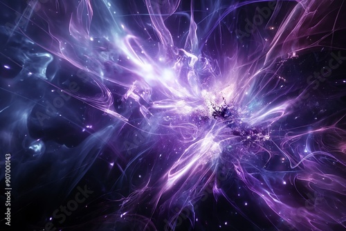 An ethereal science fiction scene with interweaving purple energy beams creating a dynamic and stellar narrative.