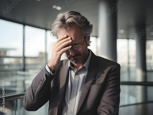 An exhausted man at work - Depression, stress, axiety and burn out theme