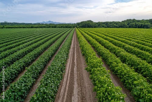 An expansive view of alternating green crop fields under a dynamic sky showcases the vastness of agricultural landscapes and the harmony of nature and human effort.