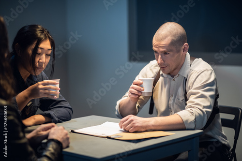 An experienced investigator and a female police officer interrogate the suspect