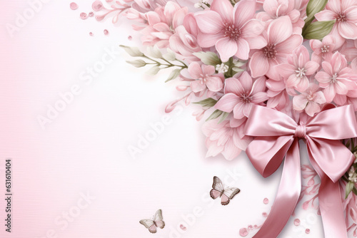An exquisite and enchanting still life featuring beautiful pink flowers adorned with bow, set against a clean background.