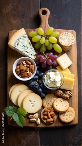 An Exquisite Cheese and Charcuterie Board Featuring Fresh Grapes, Savory Crackers, and Creamy Cheeses for a Delightful Tasting Experience.