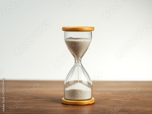 An eye-catching hourglass with sand running out, symbolic of time slipping away, concept, passing, hourglass