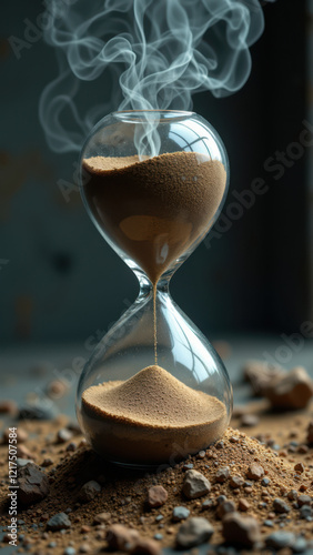 An hourglass filled with sand, used as a symbol for the passage of time or metamorphosis.