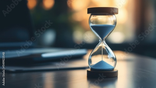An hourglass on a wooden surface capturing the essence of time, patience, and the fleeting nature of moments, perfect for philosophical or motivational themes.
