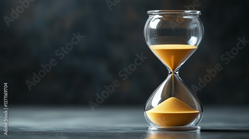 An hourglass with sand. Isolated hourglass on a wall. A transparent background with a sand castle. A sand-filled lifestyle hourglass.