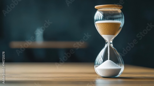 An hourglass with the top half representing worklife balance, and the bottom half showing a declining balance as time passes