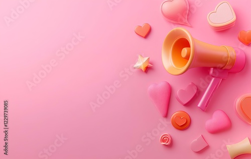 An icon for Instagram stories with a pink megaphone and speech bubble, surrounded by floating emoji symbols like a lightning bolt