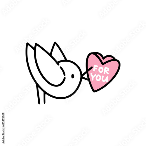 An icon of cute little bird with heart-shaped valentine in it’s beak.