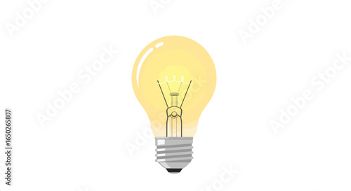 An illuminated light bulb with a visible filament, emitting a warm, yellow glow against a plain white background.
